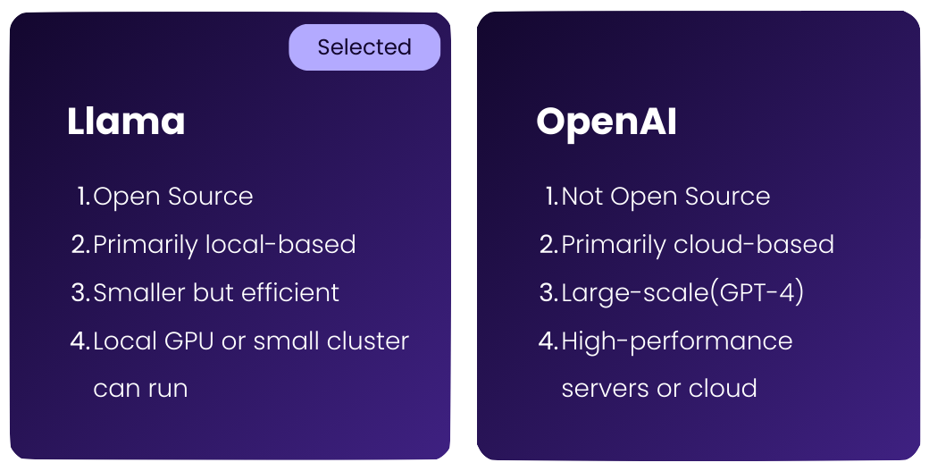 Llama is optimized for local deployment, providing greater control over data and privacy. Additionally, its lower hardware requirements make it ideal for creating AI Agents that operate directly on user devices.