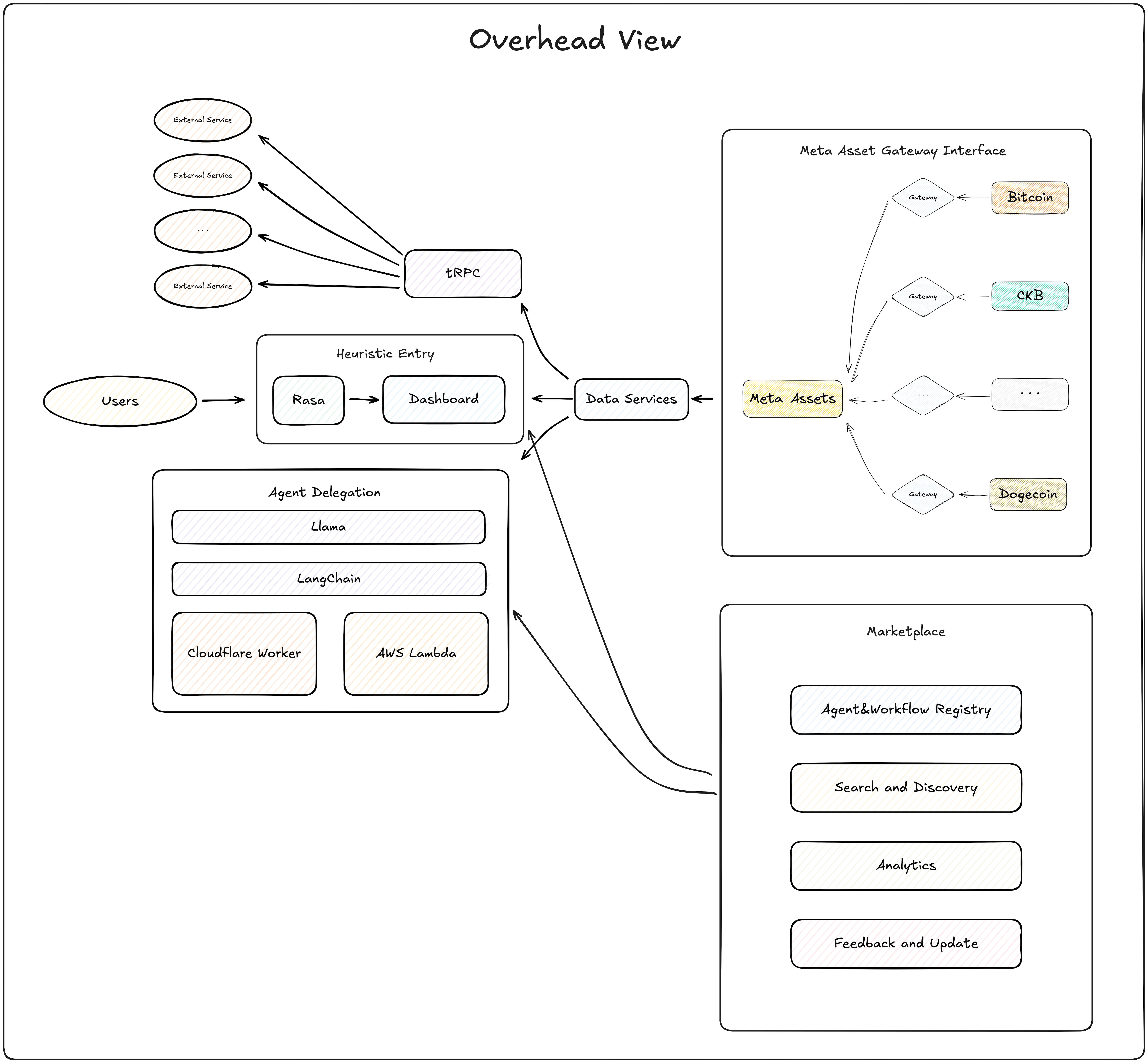 The Meta Asset handles assets all over blockchains and lets users manage assets (like transferring or swapping cryptocurrency) without worrying about the differences between blockchains. While Gateway Interfaces connect to blockchains, keep track of what's happening in real-time, and "translate" between blockchains, so they all speak the same language and can be understood by the rest of the system.